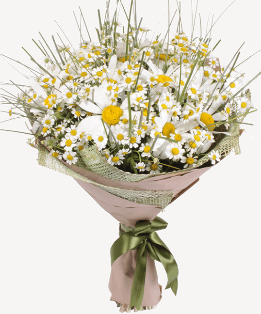 2 больших ромашек, 2 кустовых ромашек, берграс, упаковка, лента3 больших ромашек, 4 кустовых ромашек, берграс, упаковка, лента5 больших ромашек, 6 кустовых ромашек, берграс, упаковка, лента